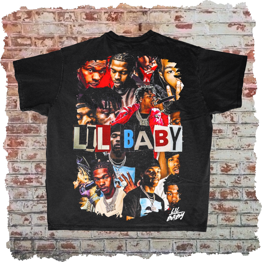 Double sided design or single sided print. For single sided design - large graphic will be on the front.
